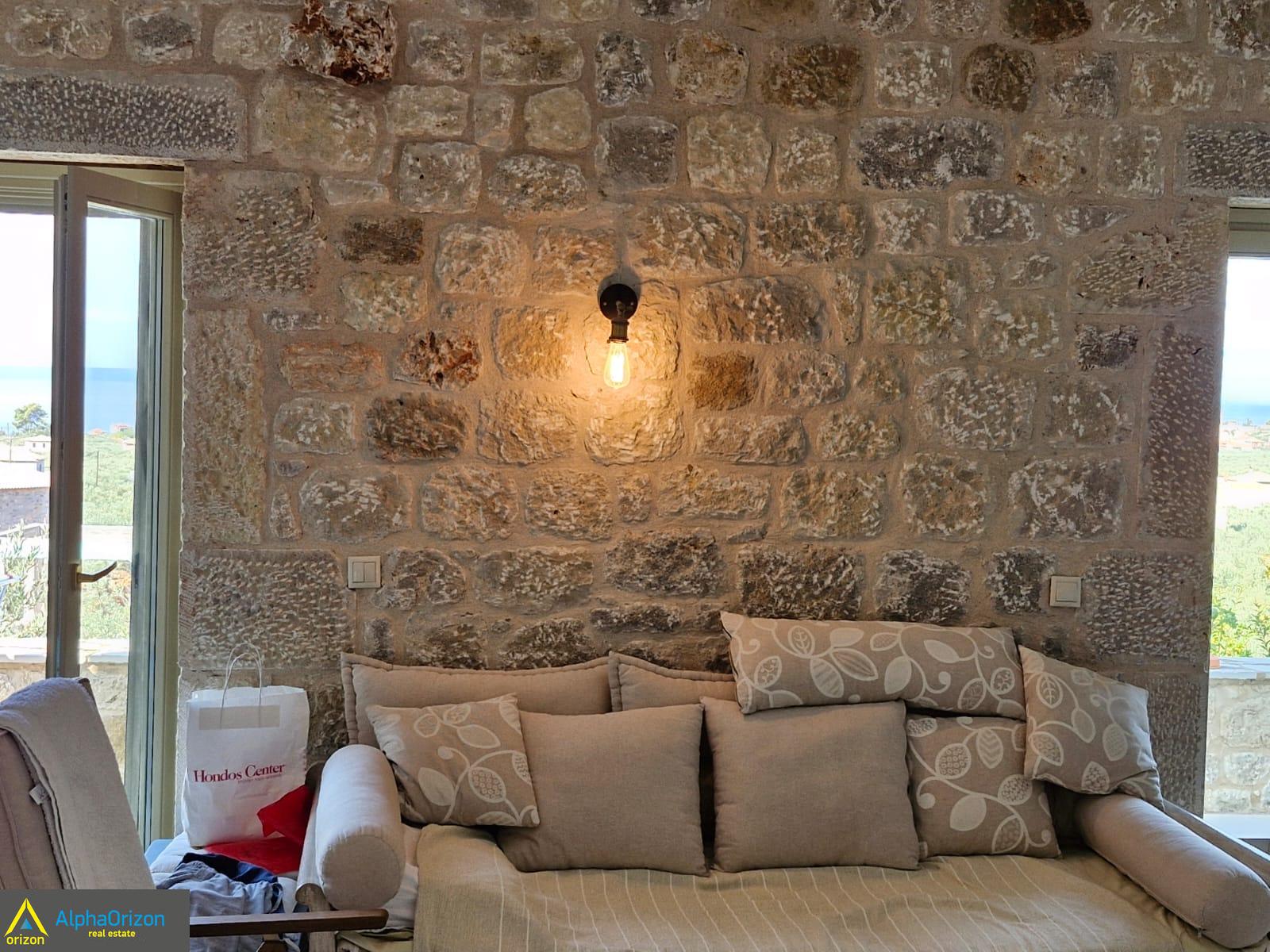 Πωλείται πολυτελή πέτρινη μαιζονέτα στα Ρίγκλια της Μεσσηνιακής Μάνης κατασκευασμένη το 2010 .Έχει θέα στη θάλασσα .Η ποιότητα κατασκευής με πέτρα κιμησίρι μπεζ .Το οικόπεδο είναι 380 τμ και το κτίσμα 120 με μιά αποθήκη 18 τμ .Διαθέτει στο ισόγειο σαλόνι με τζάκι , κουζίνα, μπάνιο και εσωτερική σκάλα που οδηγεί στα 2 ΥΔ και στο δεύτερο μπάνιο .Υπάρχουν μεγάλες βεράντες και στη καμινάδα έχει τοποθετηθεί ο Σιφναίικος φλάρος από καμίνι της Σίφνου .